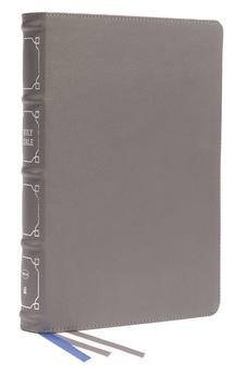 NKJV Reference Bible, Classic Verse-by-Verse, Center-Column, Genuine Leather, Gray, Red Letter, Thumb Indexed, Comfort Print